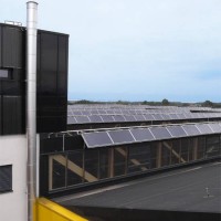 Grandes pavilhões industriais estão também recobertos por painéis solares térmicos com as suas grandes áreas, estes painéis veem auxiliar os sistemas nos prédios sociais, para a produção de agua quentes sanitárias e pré-aquecimento logo que seja necessário devidamente ao clima desfavorável ás mangas curtas..